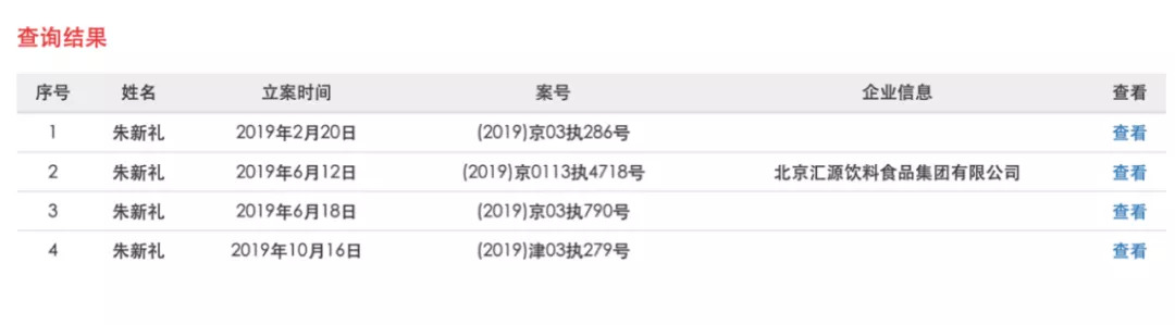 汇源集团创始人朱新礼又被列为失信被执行人了。