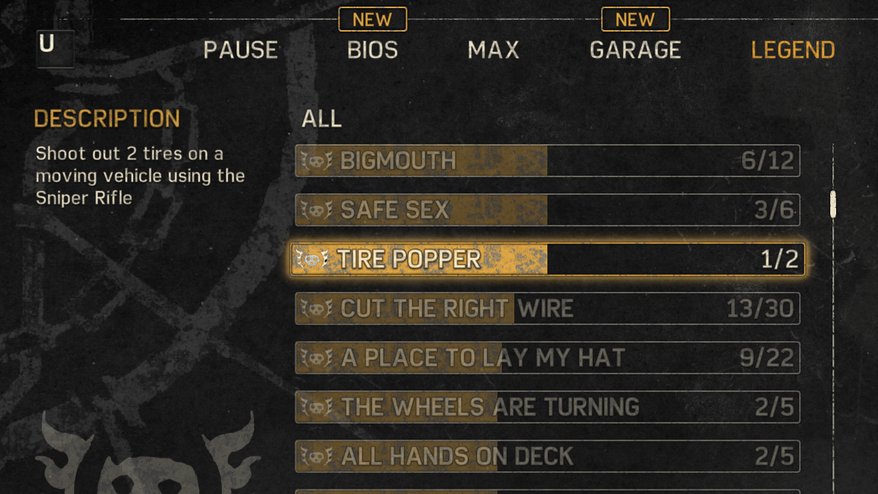 因此,在冲击废土前留意哪些挑战任务已经濒于完成将很有帮助。在菜单的传奇选项卡中有一系列挑战任务,你可以看到这些任务的进程。时不时地关注一下那些即将被达成的挑战,迅速完成后能够获得不少令牌。如果你已经通过撞击摧毁了四辆汽车,再有一辆你就可以完成这一挑战,或者你已经让九个敌人缴械投降,只需再来一个就可以完成任务,那么你可以默记在心中,下次有机会时优先完成这些挑战任务。