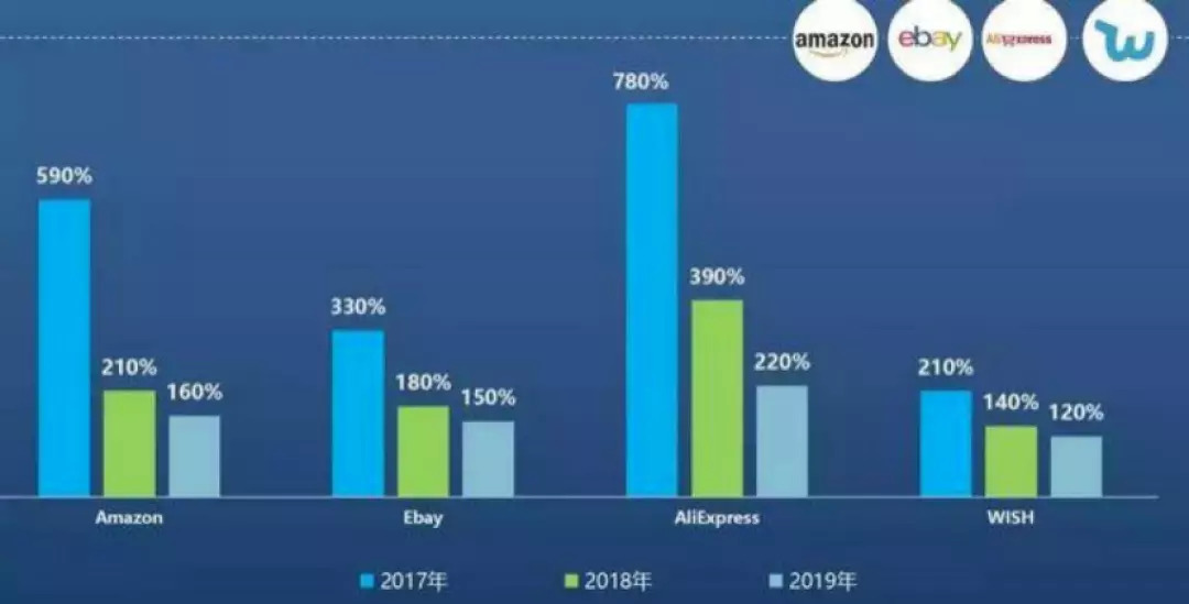 与之相呼应的是,近3年,无论是Amazon、eBay、阿里速卖通还是Wish,销量增速都在放缓,平台红利正在成为过去式。