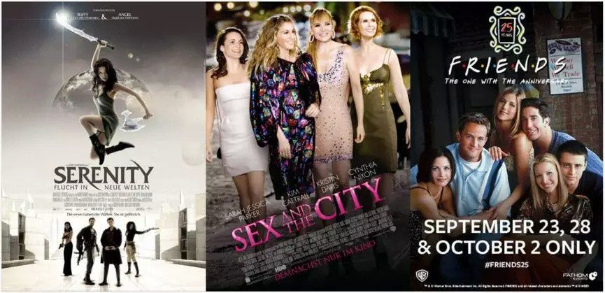 除了今天刚刚上映的《唐顿庄园》电影版,像《欲望都市》《萤火虫》都曾推出衍生电影。其中,前两部剧集都已经开发了两部影片。