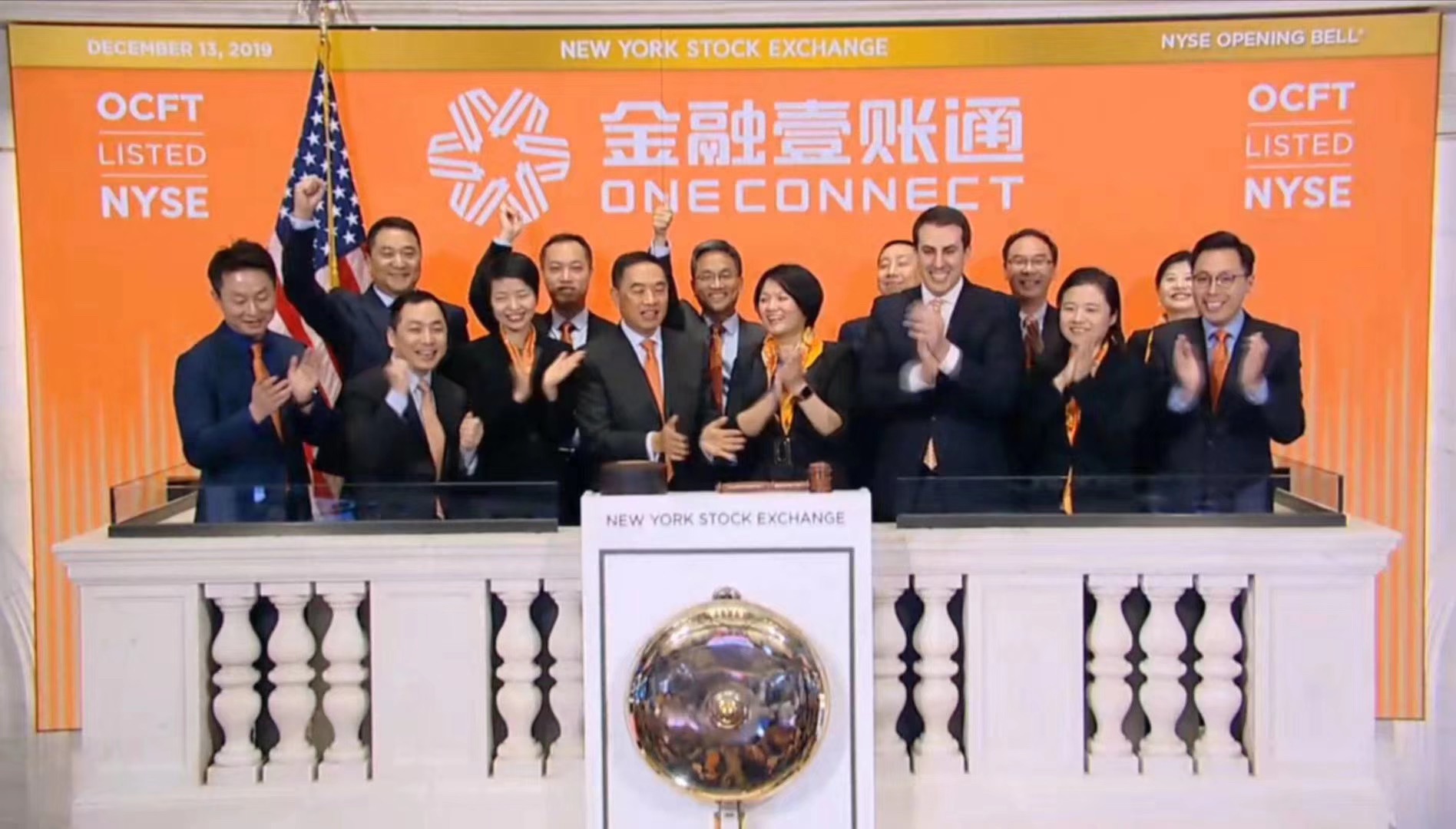继平安好医生2018年5月在港交所正式挂牌上市后,美国当地时间12月13日,中国平安旗下又一家科技类公司金融壹账通(NYSE:OCFT) 正式在纽交所挂牌上市。