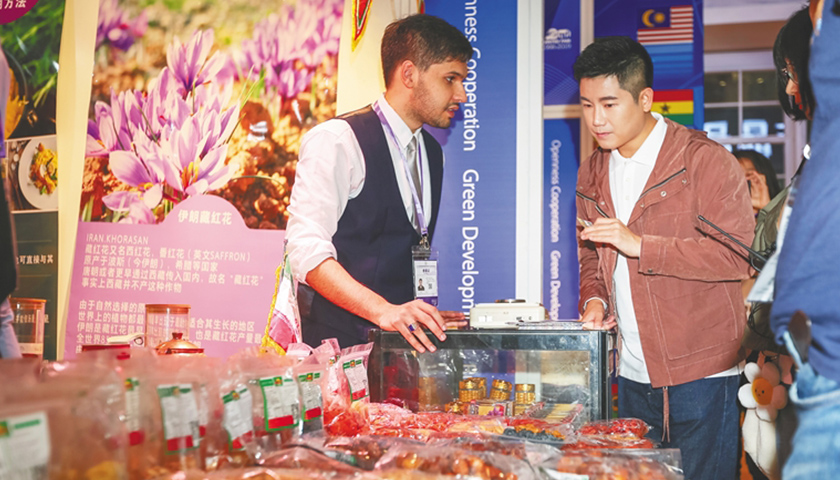 无论是英国的蓝山咖啡、老挝的茶叶、蒙古国的羊毛衫,还是海南沉香蒸眼罩、琼海大米,各处展位前都挤满了人。