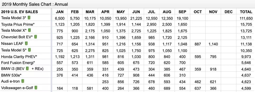 加州政府为了鼓励新能源汽车,额外追加了4500美元补贴。但是,整体来说,美国的退补趋势还是很明显。在这个趋势下,新能源汽车对美国民众的吸引力也会大幅缩水。因此,近期美国新能源车市场表现实际上非常低迷。2019年9月,美国电动汽车销量为3.3万辆,同比下降25%,连续第3个月下滑。