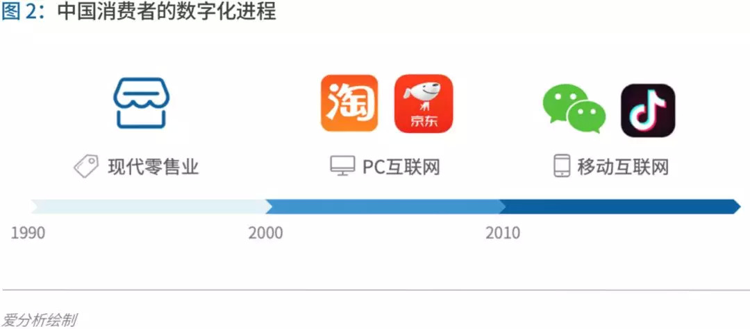 如何跟上消费者的快速变化,是品牌商面临的首要命题。在数字经济时代,数字化是新一代消费者的核心特征。从20世纪90年代至今,中国现代零售行业的发展历程大致上可以划分为三个阶段,也对应者中国消费者的数字化进程。