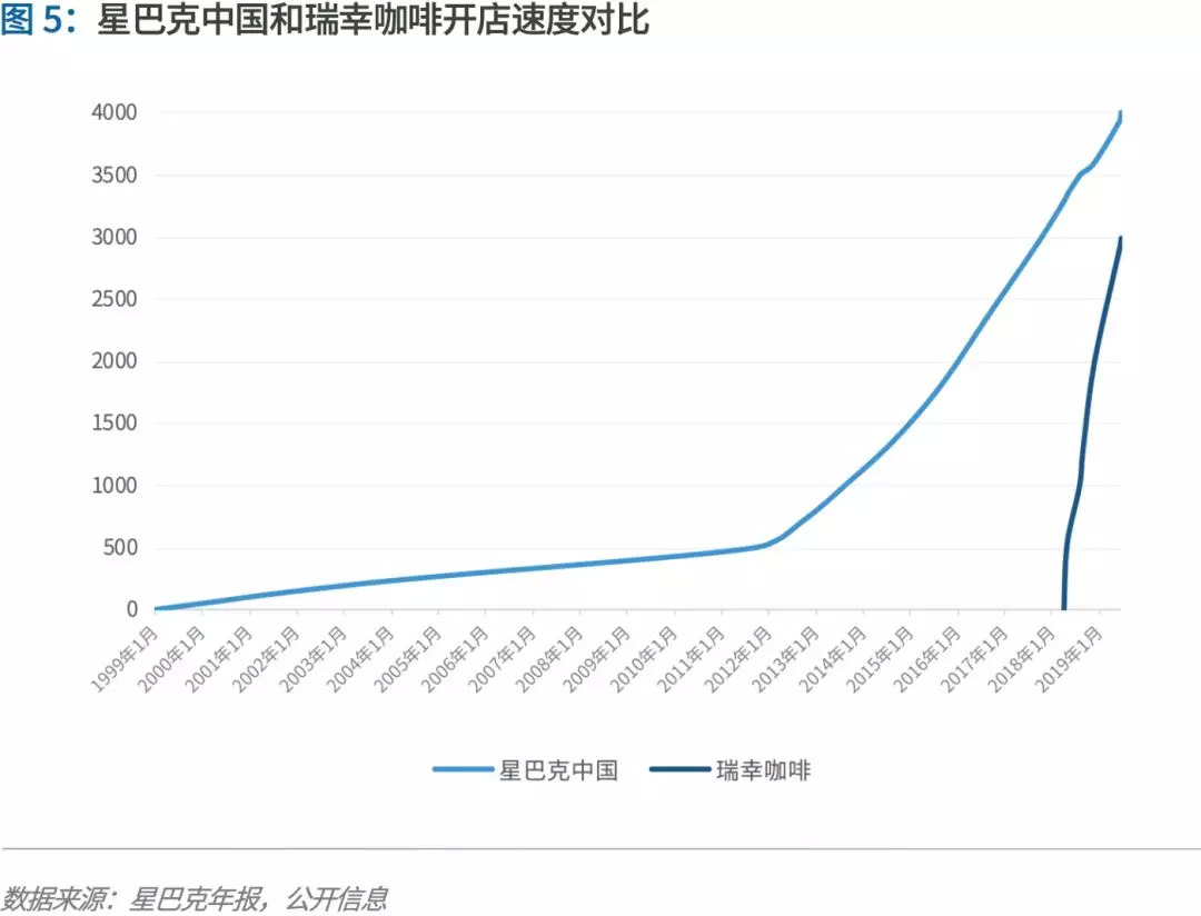 瑞幸咖啡是快消饮品领域新物种的典型代表。从2018年5月正式开始营业,到2019年5月登陆纳斯达克,再到2019年7月门店数量达到3,000家,与咖啡连锁巨头星巴克的开店速度对比,瑞幸咖啡走出了一条非常陡峭的增长曲线。