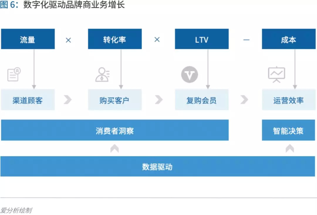 数据驱动的智能化阶段是数字化的最终价值体现。数字化通过数据驱动助力品牌商实现消费者精准洞察以及运营效率提升,来推动业务增长。