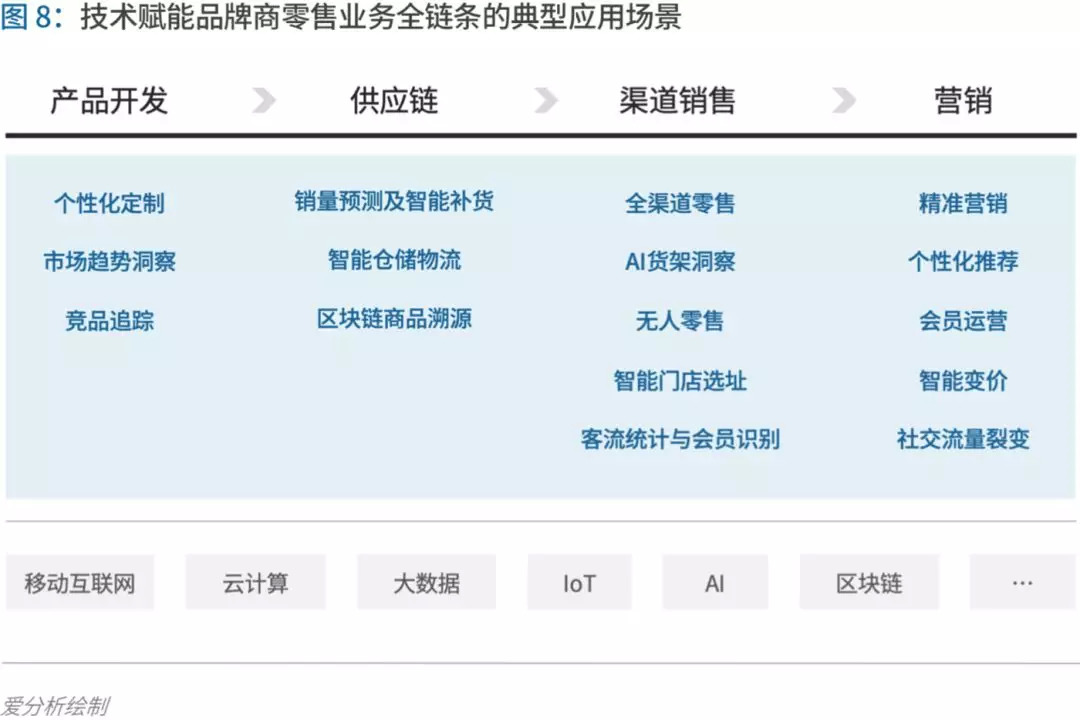 目前,在品牌商的产品开发、供应链、渠道销售、营销等各个业务链条上,行业内都在不断积累基于数字技术的应用场景。