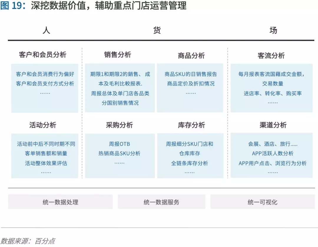 在零售领域,百分点以数据中台为基础,将数据以服务方式提供给前台应用,以提升业务运行效率、促进业务创新、推动线上线下业务融合,构筑商品生产、营销、运营、品牌数字化闭环,打造以消费者体验为中心的智慧新零售。其客户覆盖商超、地产、烟草、快消等领域,现已服务王府井、华润置地、中免集团、联合利华、洋河股份等诸多大型头部客户。其中,中国免税品(集团)有限责任公司(以下简称“中免集团”)是典型客户。