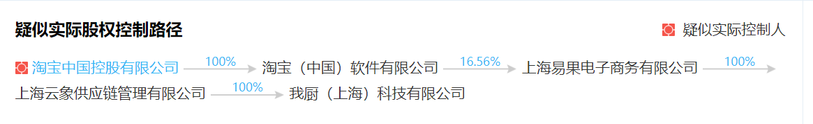 从“我厨”股权控制路径可看出,其为上海易果电子商务有限公司(即“易果生鲜”的实际经营主体)旗下的全资孙公司。