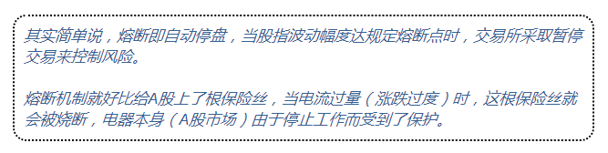 周一晚间,证监会又出人意料地导演了一出年度好戏——“时间停止”系列之《熔断吧,A股君》,内容堪称大手笔大制作——拟在保留现有个股涨跌幅制度前提下,引入指数熔断机制;拟设置5%、7%两档指数熔断阈值,涨跌都熔断。指数熔断机制是个什么鬼?这难度堪比专八的救市术语,又让学长体会了一把股民的艰辛……