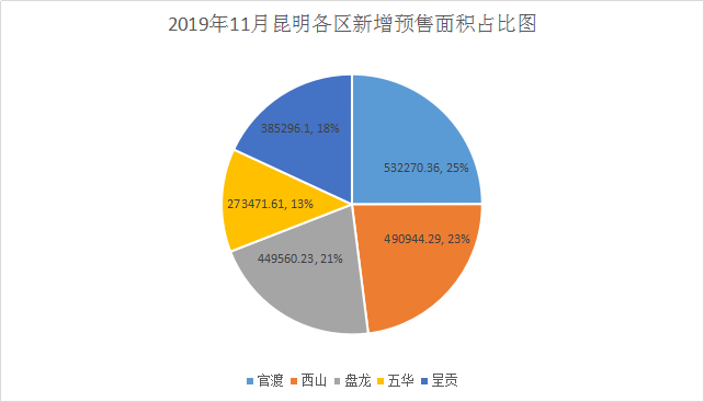 盘龙区有6项目获得11张预售证,新增预售面积约45万方,占11月新增预售面积的21%;呈贡区有11项目获得13张预售证,新增预售面积约39万方,占11月新增预售面积的18%;五华区有5项目获得6张预售证,新增预售面积约27万方,占11月新增预售面积的13%。