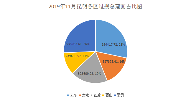11月过规的12个项目分别位于官渡、五华、盘龙、西山、呈贡五区。其中,五华区是过规量最大的一个区域,有3项目过规,过规总建面约56万方,占11月过规总建面的27%。与之类似,西山区也有3项目过规,但过规总建面相比五华区少了30余万方。