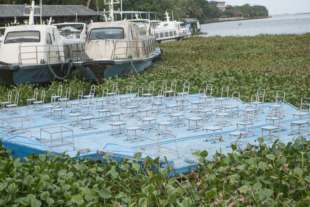 七月上旬,正是海南一年中最热的时候。从美兰机场出来,搭上东线环岛高铁,一路往南开。一个小时后,风景从大片的胡椒、橡胶,逐渐变为稻田、水牛和槟榔,博鳌到了。我们搭上一辆出租车,又钻进树丛里。从资料上看,南强是个小村子,但这里的出租车司机似乎都知道它。新铺的柏油路在太阳下黝黑黝黑,路边成排的小叶桉,零星的台湾相思,羊蹄甲和樟树飞快掠过。驶过一座架在万泉河上的桥,南强村就到了。