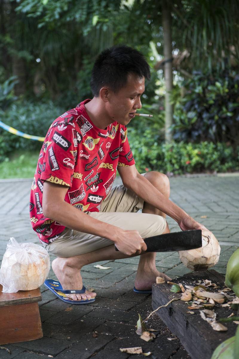 为了能融入当地,赢得村民的信任,史庆杰颇费了一番努力。一开始,他无法理解村里的生活,习惯了都市的他,觉得这里太悠闲了。每天上午七点左右,村民们起来喂鸡,浇菜,然后就去博鳌镇上吃早餐。早餐有时吃半个小时,有时吃一个上午,可以是一碗粉汤或炒粉,也可以是面包,配一杯加炼乳的红茶、或当地咖啡。这种咖啡也不像他平常看到的,是将咖啡豆磨成粉后,大锅翻炒,最后加入沸水里煮,味道苦而浓烈。村里的阿婆请史庆杰喝自家煮的咖啡,他没加炼乳喝下去,觉得胃被刮洗了一通。