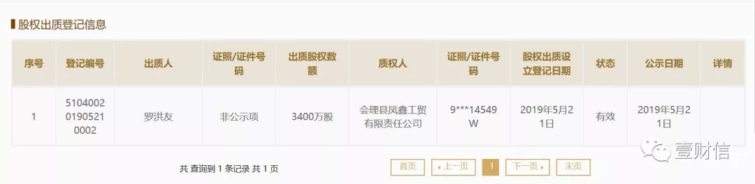 但企信网信息显示,在安宁股份于2019年5月10日向证监会递交招股书,并于5月22日受理在官网披露的期间内,第三大股东罗洪友于2019年5月21日将其持有的3,400万股股票全部质押给了会理县凤鑫工贸有限责任公司(以下简称:凤鑫工贸)。