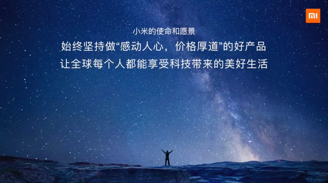 但对我们要做的事情来说,小米才刚刚开始。我想把我们按这种哲学做出来的中国产品,带到全世界,让全球的每个人,都能享受到来自中国的科技创新乐趣(这一点后来我们总结升级为了我们的使命:坚持做感动人心、价格厚道的好产品,让全球每个人都能享受科技带来的美好生活)。