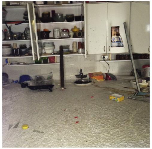我们可以想象,那些卧室、厨房和客厅被水泥浇筑的景象,水泥如洪水一般淹没了巴勒斯坦人的日常生活,炉灶、床褥、玩具……被浇灌前的家庭生活画面在某一刻被定格,最终在记忆中造成不可逆的效果。这些很可能不属于肇事者的房屋将随着时间的流逝停留在社区之内,并在下一个时空中作为某种纪念。