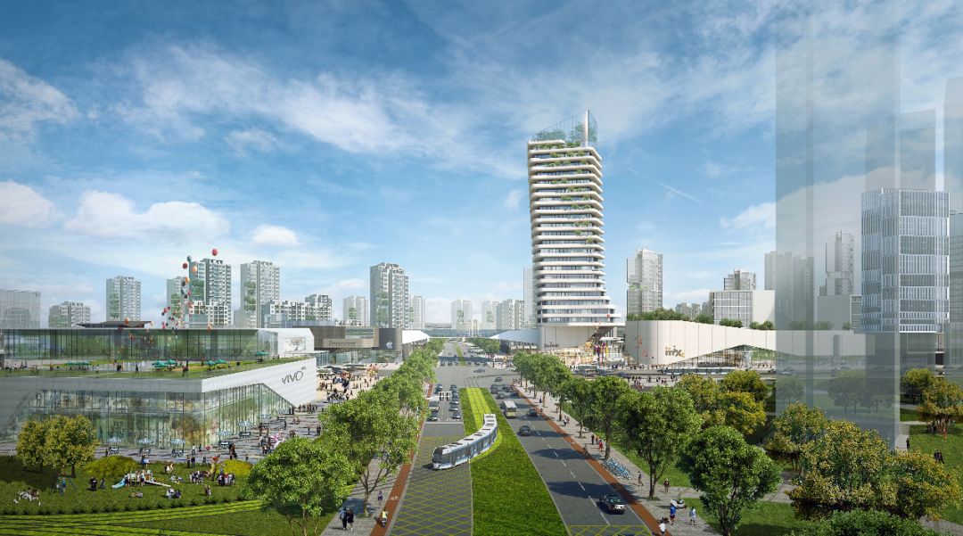 首先,主中心区引入了国际流行的TOD(以公共交通为导向的设计模式)发展理念。主中心区域将依托滨铁2号线(原Z4线),汇聚商业综合体、门户广场、会展商务酒店、高端住宅、精品购物中心、特色时尚街区、度假休闲中心等功能,打造绿色便捷、开放共享、智能低碳、功能复合、独特优美的“绿智城”。