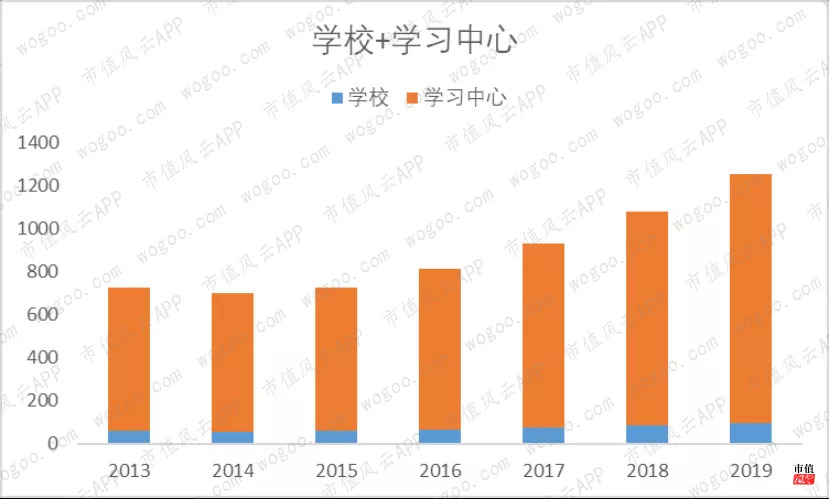 公司旗下学校数从2013财年的57所稳步增至2019财年的95所,CAGR为9%;而学习中心数同期从669个增至1159个,CAGR为10%。