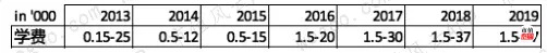 从学费来看,2013财年为200-3500元/人,2019财年为800-5000元/人,总体上与时俱进。