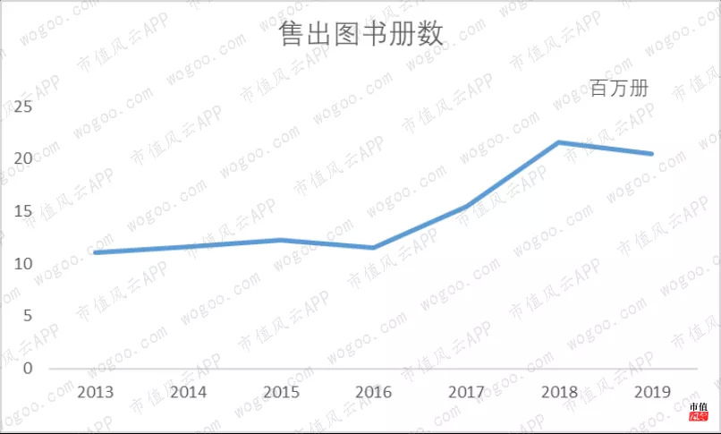 我们再来看公司的售出图书册数:2013财年,公司售出1110万册书;2019财年,售出2050万册,但较上年同期略有下降。