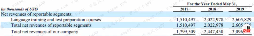 其中,语言培训及备考占绝对主力,2017-19财年占收入的比重依次高达83.9%、82.7%、84.2%。其他单一板块收入占比均低于10%,所以不做细分。