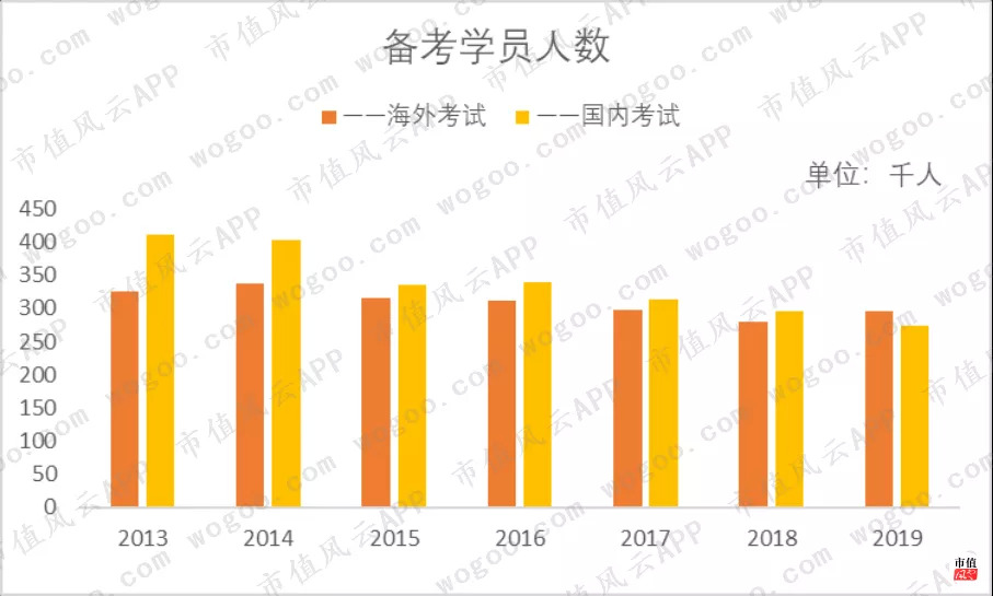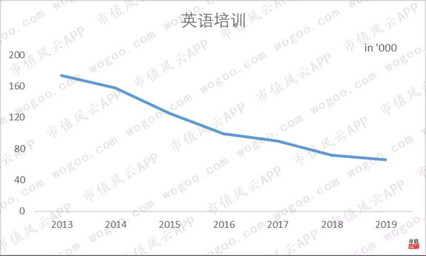 该培训参与学员呈快速单边下滑态势,从2013财年的17.4万跌至2019财年的6.6万,年均衰减15%。