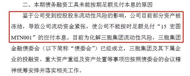 对于债务违约的原因,宏图高科则公告表示,是因为受到了控股股东三胞集团流动性风险的影响。