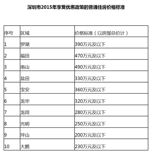 11月,深圳重新制定了豪宅标准,以前各区非豪宅的认定标准是这样的: