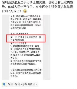 在深圳一个又一个热门小区,一个个大哥正在站出来,在他们的呼吁下,业主们组成一个又一个涨价联盟,集体涨价,少则一两成,多则三四成。