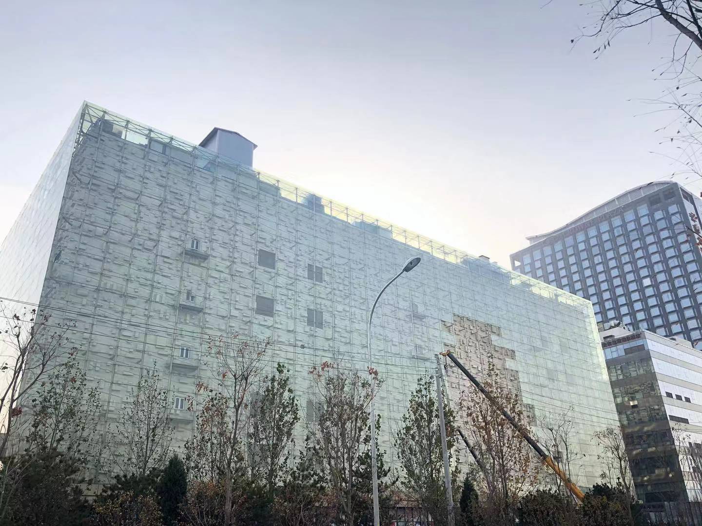 但在如今北京冬日萧瑟的日光下,工人们正在拆除外立面的玻璃,曾经炫目的玻璃幕墙将不复存在。