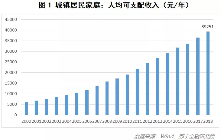 我国同样如此,城镇居民家庭的人均可支配收入不断提升,同时,大资管行业整体规模也在快速增长(见图1),截止2018年末,整个大资管行业规模达到124万亿,过去五年平均复合增长率超过30%。可以说,收入提升必然带动资产管理业务的快速发展。