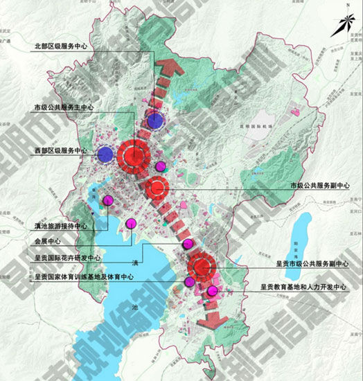三面环山的地理地貌特征,天然地决定了昆明的城市发展脉络。因此,2016年时经国务院批复的《昆明市城市总体规划(2011—2020年)》,就为昆明描绘了“一城三区”,“1+2”多组团、生态穿插、有机联系的城市空间结构,以及“南延、北拓”两大重点城市发展方向。