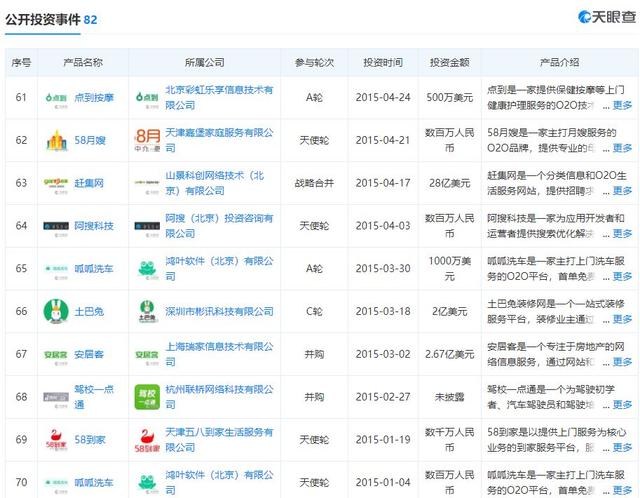 在聚焦本地生活服务的同时,58同城也看准机会孵化新的业务。首先是上门在O2O服务领域拆分出58到家,2015年10月完成A轮阿里巴巴、平安创新、KKR的3亿美元融资。此次融资后,58到家的估值超过10亿美元。