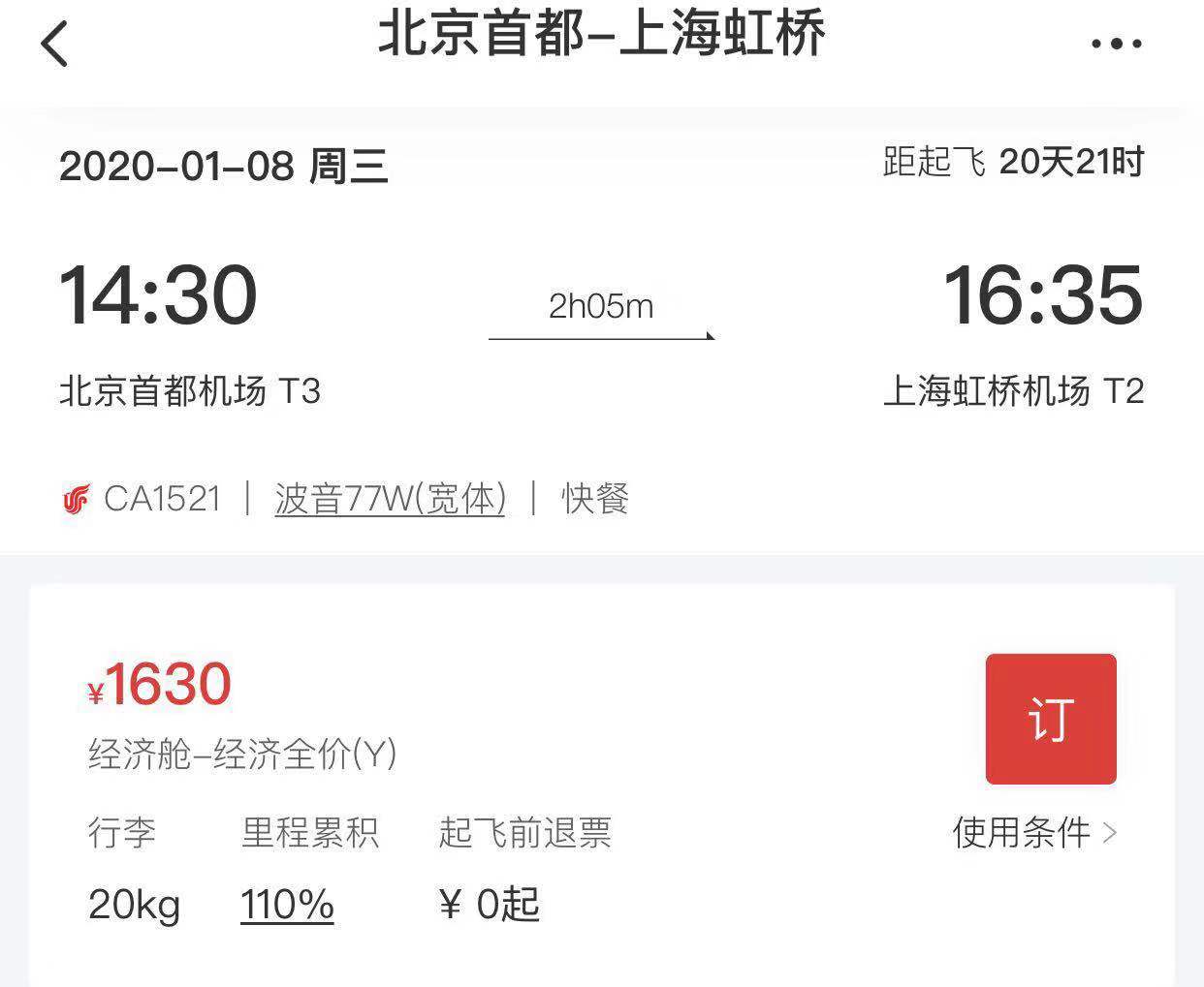 2020年1月1日起,东航、国航等多家航空公司京沪航线经济舱全价票价格再次调整,上涨至1630元,而目前京沪线全价票为1480元。