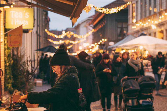 里瑟本游乐园位于哥德堡中心,这里会举办瑞典最大的圣诞集市。数百万闪耀的节日彩灯和一千多棵圣诞树装点着节日气氛。游乐场内设有惊险刺激的游乐设施和溜冰场,绚丽圣诞灯光展是今年一定不能错过的新活动。如果偏爱小而美的圣诞集市,在老城区哈加,沿着历史悠久的鹅卵石街道搭设的圣诞集市是当地人的最爱。在集市的小店里,大量的手工艺品以及时尚的设计单品,从家居用品、圣诞节装饰品到时商单品,一应俱全。周末庆祝活动还包括现场音乐演出和马车巡游。在老市政厅(Kronhuset)的历史建筑旁,则设有一个更为传统的圣诞集市。这是哥德堡最古老的圣诞集市,也是购买各种精美圣诞装饰品和手工艺品的理想场所,在这里可以品尝到温甜酒和各种自制的节日甜点。