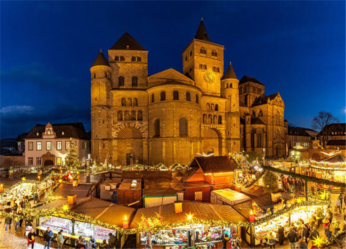 特里尔位于德国西部,有着超过两千多年的历史,是德国最古老的城市之一,也以马克思诞生地而闻名。圣诞市集在中世纪建筑特里尔主教座堂前举办,特里尔圣诞市场已走过40个年头,“浪漫而美妙的氛围”通常被用来形容特里尔的集市。从历史木偶剧院到男高音的演唱,这里的节目每天都变换着花样来吸引人们。