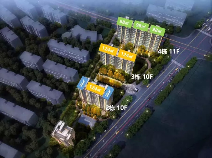 G32B地块的4栋楼中1号楼将作为人才房,2号楼户型建筑面积为98、124㎡,3号楼全部为124㎡,4号楼全部为98㎡。