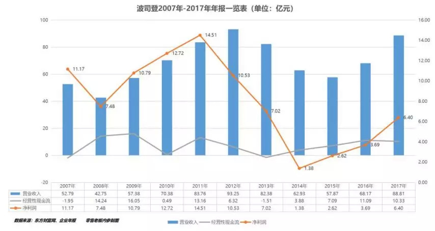 这个亏,波司登是早就吃过的。2012年波司登发力出海,国际快时尚品牌优衣库、ZARA、GAP和H&M反而在国内遍地开花,2014年,波司登迎来了业绩最惨一年。由下图可见,2011年之后,波司登净利润持续四年下滑。