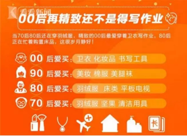 这句话放在两年前,绝对不是误解。2017年的《淘宝双12消费报告》显示,70后和80后才是羽绒服的消费主力,但今年,主角变成了90后。最新榜单显示,羽绒服已经进入90后消费者喜爱的TOP5商品。