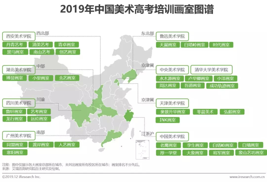 全国最大画室分布在九大美院周围,高度依赖名师招生,市场集中度低