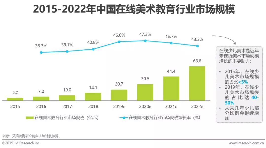 在线美术市场2019年规模为20.7亿元,年增速超45%