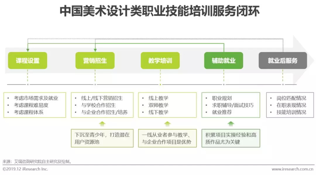 对美术职培机构而言,就业是业务落脚点,就业后服务市场有待填补,二者直接影响企业未来竞争力