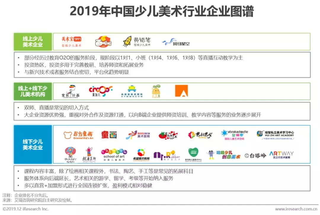少儿美术培训市场:线下机构多以直营+加盟方式运营,其中代表性机构的校区数量普遍达数百个,正在全国性扩张;线上企业创新性强,更受资本青睐,代表性机构学员数已达数万人。