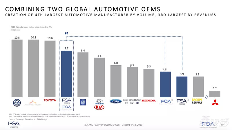 此次合并,目前来看仍在顺利推进,到2021年,如果没有来自外部势力的阻挠,标致雪铁龙与菲亚特克莱斯勒就将正式合并,成为全球第四大车企(以2018年销量为参考)。