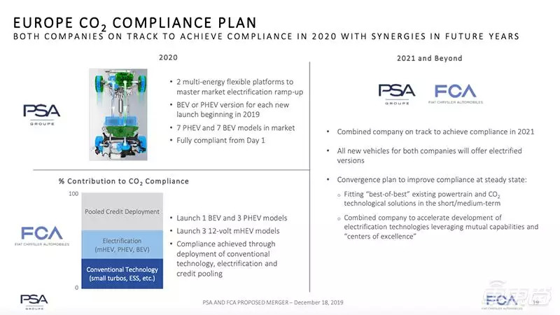 两家公司的预计合并时间会在2021年,届时,新集团的每款新车都将提供电动版本。