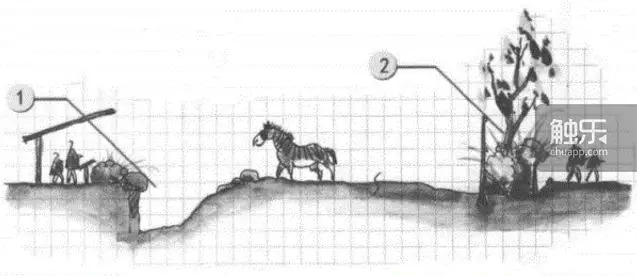 动物栖地的剖面设计图,总的原则仍是综合考虑游客与动物的双重感受,保障可观赏性和安全性