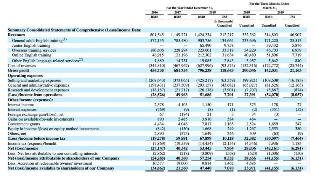 据招股书,美联英语的营收从2016年的8.02亿元增长至2018年的14.24亿元;净利润从2016年的-2715万元,到2017年扭亏为盈,达4034万元,并于2018年增至5345万元。
