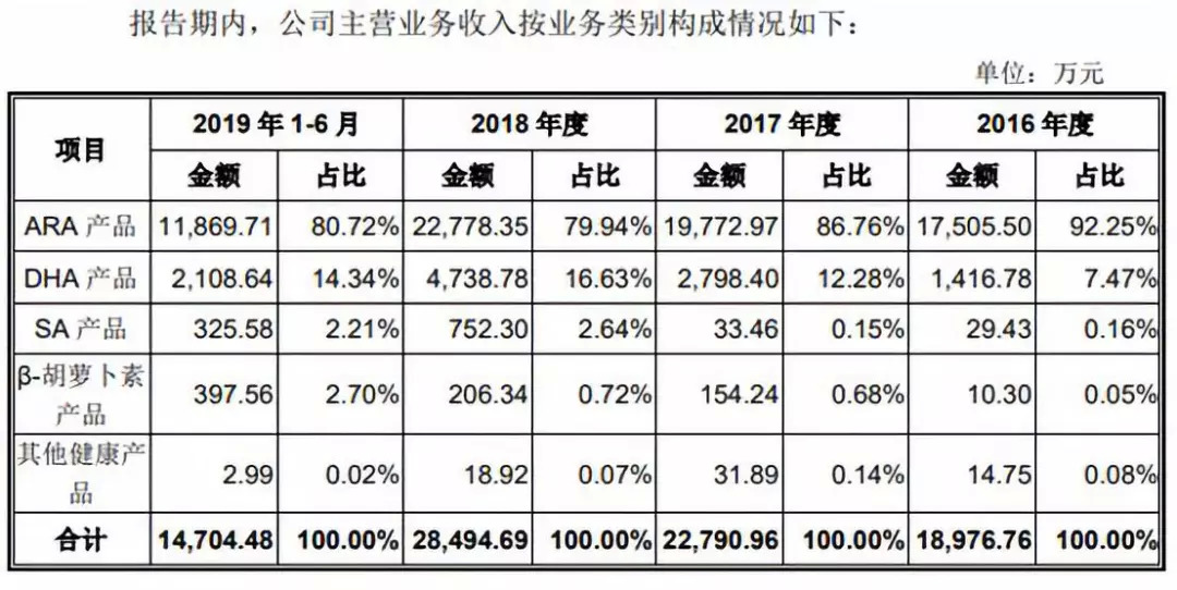 根据招股书的描述,公司的发展大致可以分为三个阶段。第一阶段为2004-2009年,从公司成立到成为国内ARA产业较为领先的企业;第二阶段为2010-2012年,在巩固ARA产品市场地位的同时,完成了DHA产品的产业化;第三阶段为2013年开始至今,主要开拓了原有产品的应用领域并开发了新产品,同时加大国际化拓展。