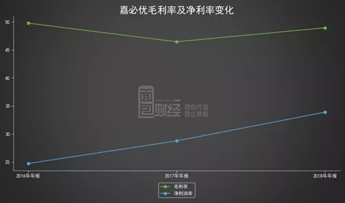 2016年、2017年、2018年及2019年前三季度,嘉必优综合毛利率分别为49.77%、46.45%、48.94%及53.38%,相对稳定。对应期间,公司净利率分别为24.74%、28.78%、33.9%及41.53%,呈上升趋势。